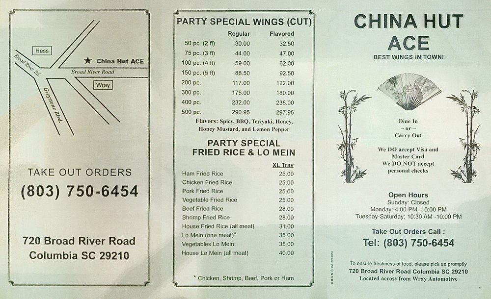 Welcome to China Hut Ace, where authentic Chinese flavors come alive in a casual and inviting atmosphere. Located at 724 Broad River Rd, Columbia, SC, this gem offers a diverse menu perfect for any occasion, be it a family lunch or a gathering with friends.
